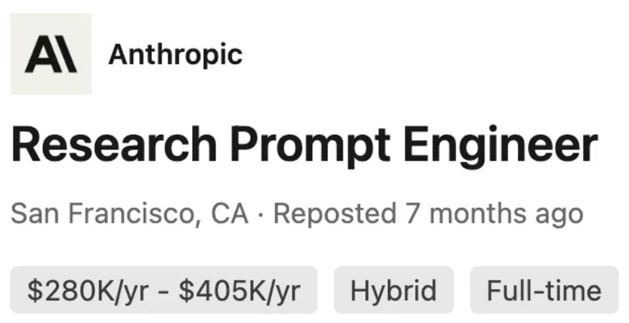 This isn't just theory either. At one point Anthropic was paying senior prompt engineers up to ~$405k/yr.